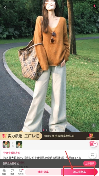在商品详情页面,点击“加入进货车”按钮,即可把该商品添加至进货车中。