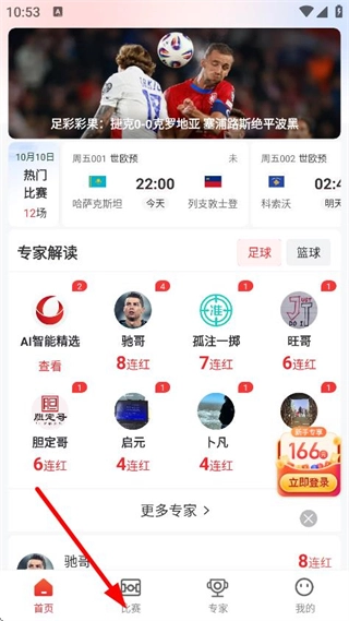 进入小炮体育首页,点击比赛,进入比赛列表页面。