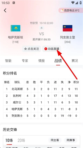 在比赛详情页面,点击动画直播选项,就能观看该场比赛的动画直播内容。