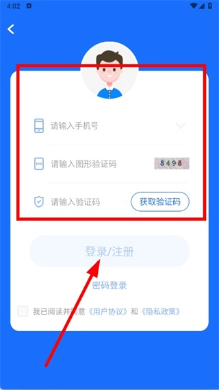 请依次输入手机号,点击“获取验证码”按钮并填写收到的验证码,勾选相关协议后,点击“登录注册”按钮,即可完成注册流程。