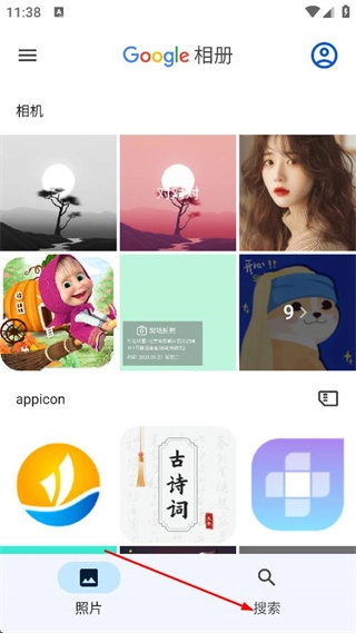 在Google相册页面,点击底部的搜索按钮,即可进入搜索页面。