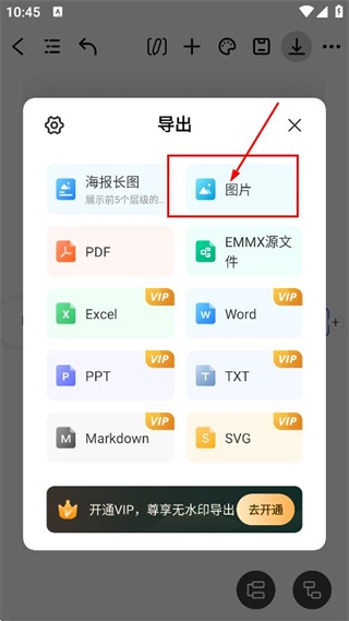 在导出选项里,选择图片,就能把思维导图导出成图片格式。