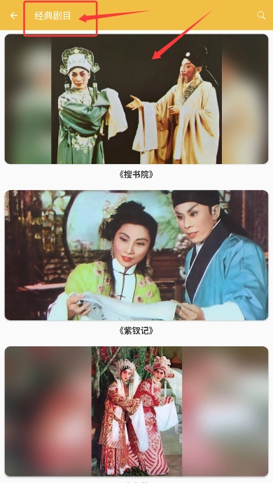 在经典剧目页面,您能够欣赏到《搜书院》《紫钗记》等代表性剧目资源。