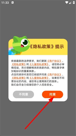 在隐私政策提示弹窗里,点击同意按钮,即可进入与登录相关的页面。
