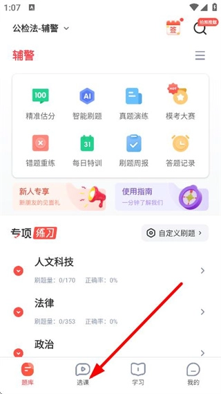 在软件主界面中,点击底部的选课分类选项,即可进入选课页面。