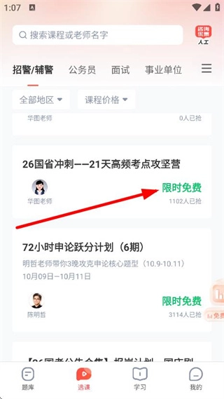 在选课界面,找到招警辅警分类并选择其中的课程,随后进入该课程的详情页面。