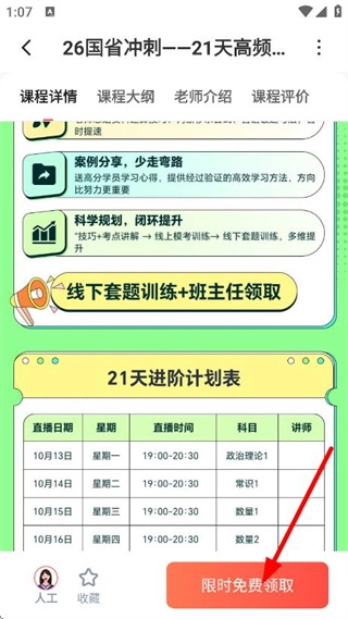 领取课程后,您可以查看课程直播的倒计时等相关信息,耐心等待直播正式开始。