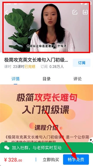 最后我们可以在课程详情页,点击畅学免费,可免费学习该课程。