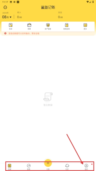 打开鲨鱼记账应用后,点击底部的“我的”按钮,进入个人中心页面,即可对账号信息进行管理。