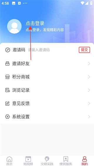在个人页面,点击点击登录,进入用户登录页面。
