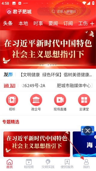 进入君子肥城首页,点击底部我的,进入个人页面。