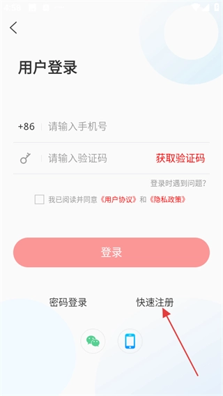用户登录页面中,要是还没有账号,可点击“快速注册”按钮,跳转至用户注册页面。
