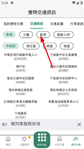 在首页,点击實時交通,进入實時交通資訊页面。