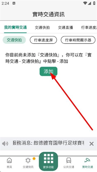 在實時交通資訊页面,点击添加,可添加交通快拍。