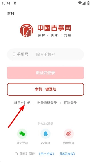 在登录注册的选择界面,点击“新用户注册”选项,即可进入注册方式的选择页面。