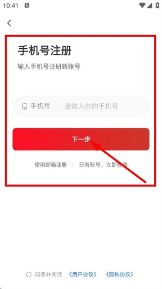 在注册方式选择页面,选择手机号注册选项,输入手机号后点击“下一步”按钮,继续完成后续的注册流程。
