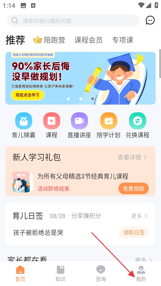选择对应的课程:打开课程页面后,结合孩子的年龄特点和实际育儿需求,从中挑选问题型或能力型的全视频课程,借助日常的碎片时间进行观看学习,从而掌握相应的育儿知识与实用方法。