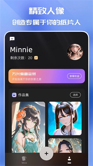 打开万兴爱画,点击底部我的,进入个人页面。