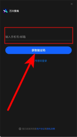 在登录注册界面,输入手机号或邮箱后,点击获取验证码按钮。
