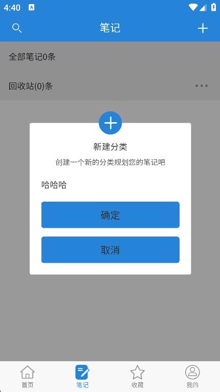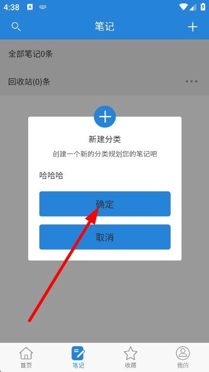 在新建分类的弹窗里,输入分类名称后点击确定按钮,就能完成笔记分类的创建操作。