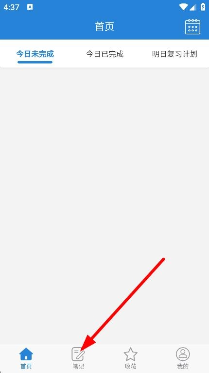 在首页,点击底部笔记,进入笔记页面。