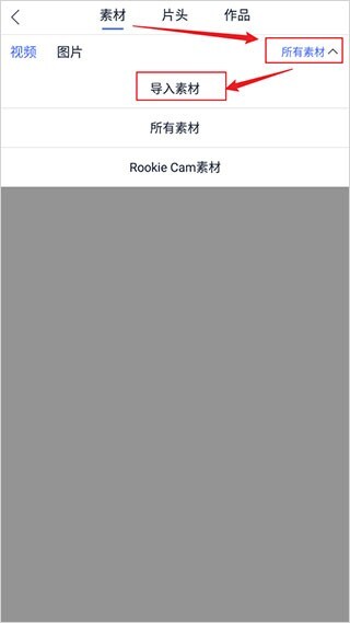 2、点击【所有素材】,选择【导入素材】;