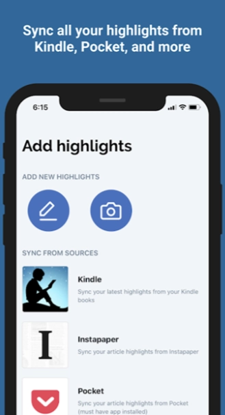 多平台阅读同步:自动从Kindle、Instapaper、Pocket、iBooks等平台同步阅读标注和精彩集锦