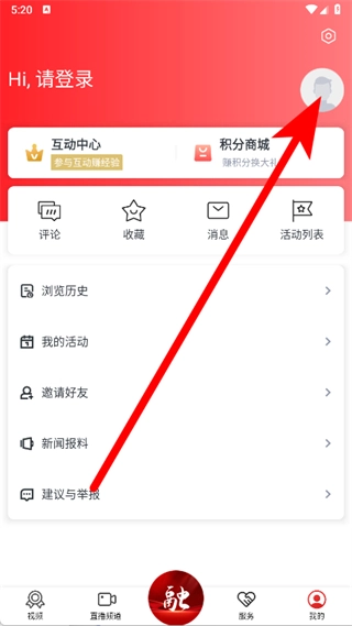 在我的页面,点击右上角的头像区域。