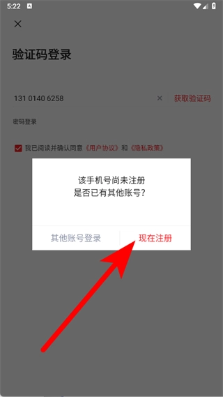 要是手机号还没注册,等弹出提示框后,点击“现在注册”按钮就行。