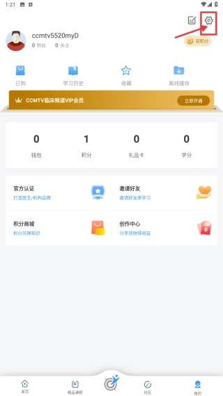 在个人中心页面,点击右上角的设置图标,即可进入设置界面。