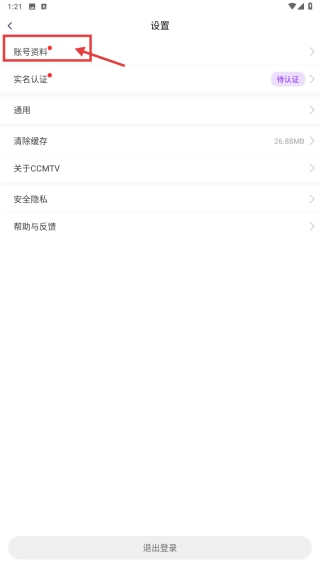 在设置界面,点击账号资料选项,进入账号资料页面。