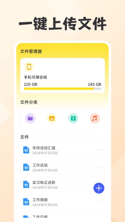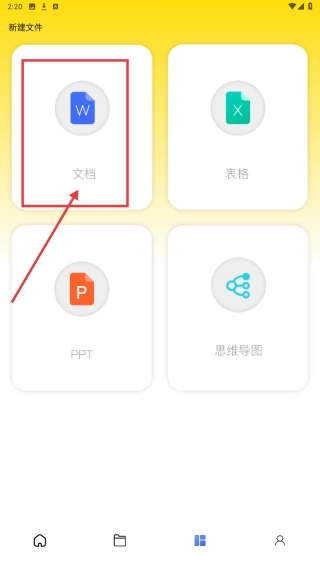 打开文件管理类应用,点击底部的对应功能图标,即可进入新建文件的选择界面。
