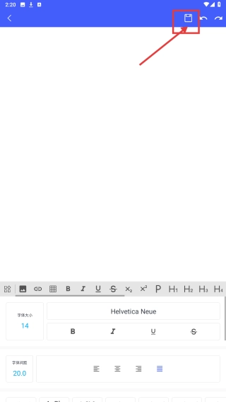 在文档编辑界面完成文字编辑等操作后,点击右上角的保存图标,即可保存文档内容。