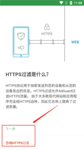 2、可以先了解HTTPS过滤,后选择“下一步”