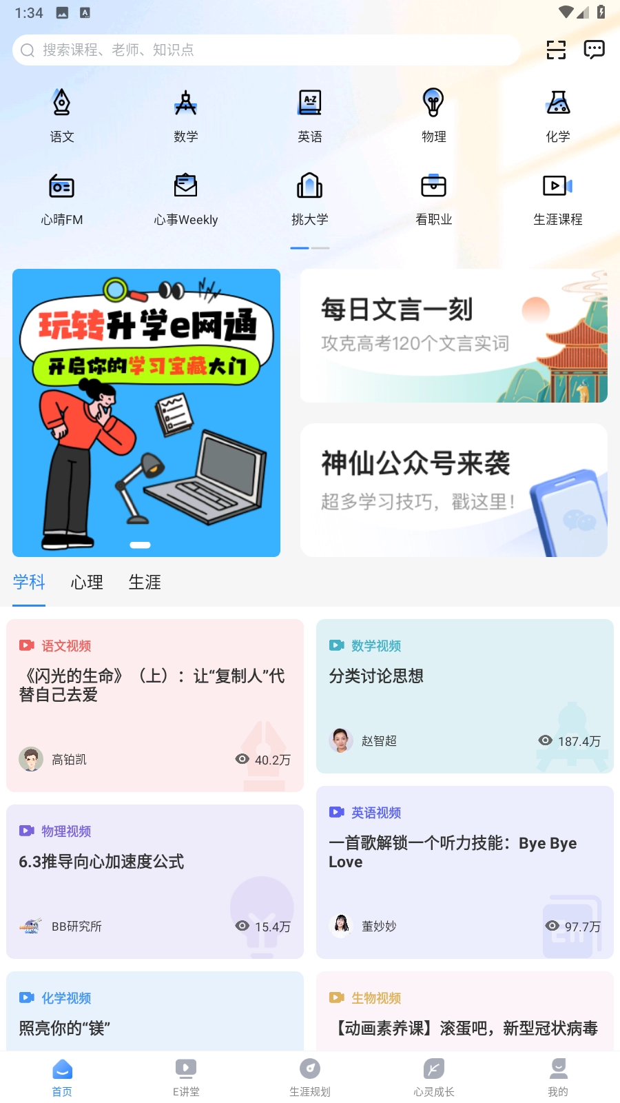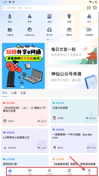 多元功能与精品课程:提供多元化的功能供用户在线选择,覆盖学习、志愿等多方面需求,同时包含更多不同类型的精品课程,以满足多样化的学习需求。