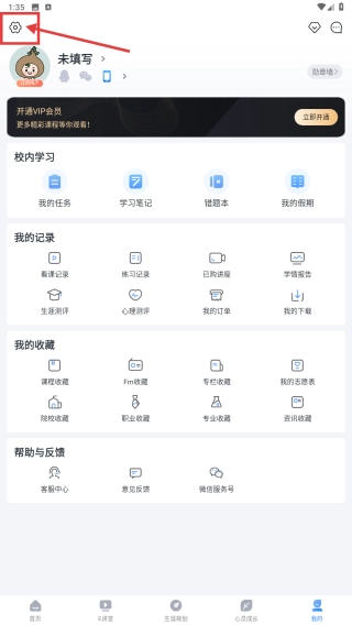 打开学习类应用后,点击底部的“我的”选项,即可进入个人中心页面。