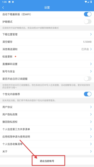 在设置页面,点击“退出当前账号”按钮,即可完成退出账号的操作。