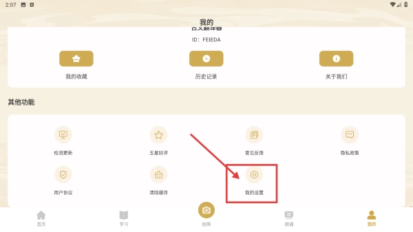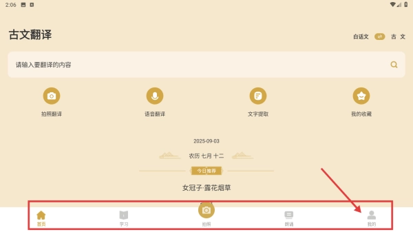 打开古文翻译类应用,点击底部的“我的”选项,就能进入个人中心页面。