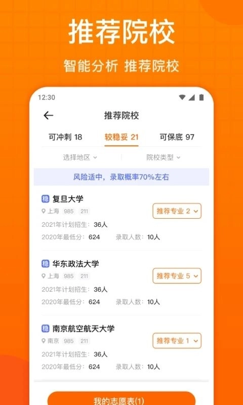 3,简洁的软件界面设计,体验轻松高效志愿填报。
