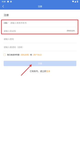 在注册页面,输入常用的手机号码,点击“获取验证码”按钮,输入收到的验证码,设置登录密码,最后点击注册按钮,即可完成账号的注册流程。