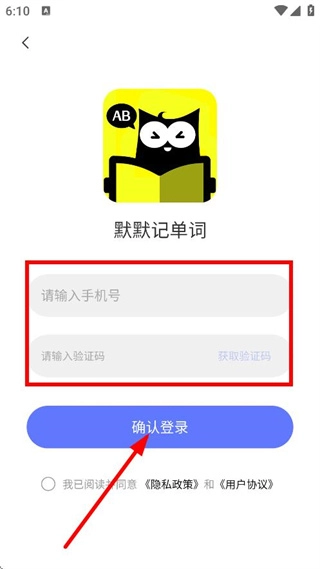 最后输入手机号码和验证码,点击确认登录按钮,即可完成账号登录操作。