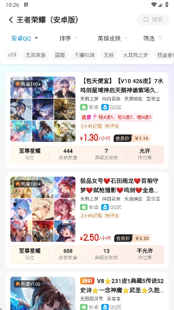 【精品账号】全英雄、稀有皮肤、大神账号应有尽有