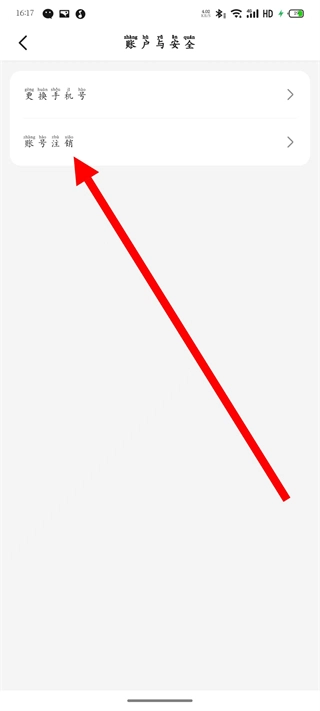 进入页面后,点击账号注销选项,进入注销账号说明页面。