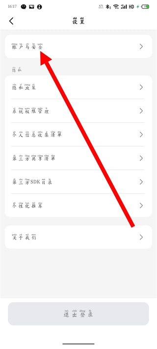 在设置页面,选择账户与安全选项,进入账户安全管理界面。