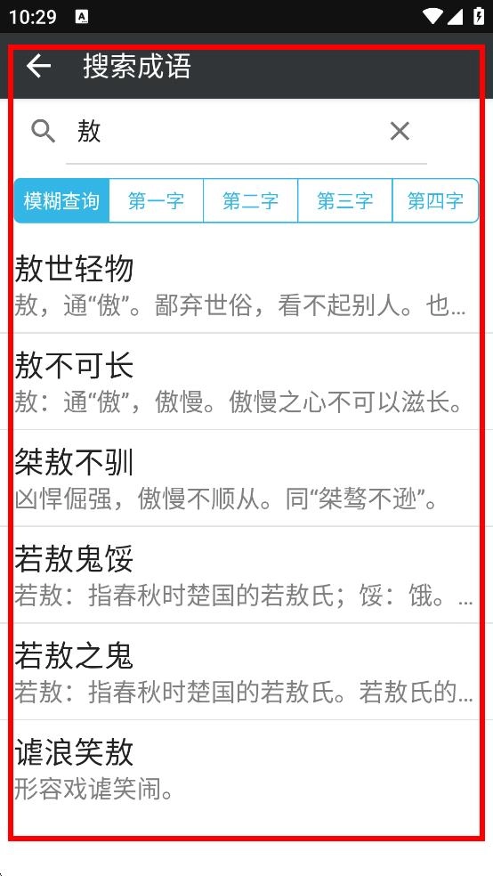 在成语搜索页面输入这个字,就能查询到包含该字的成语。
