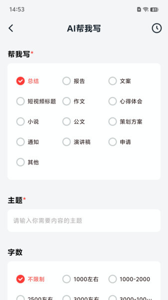 1.输入不同的文章的主题,快速生成各种文章的内容