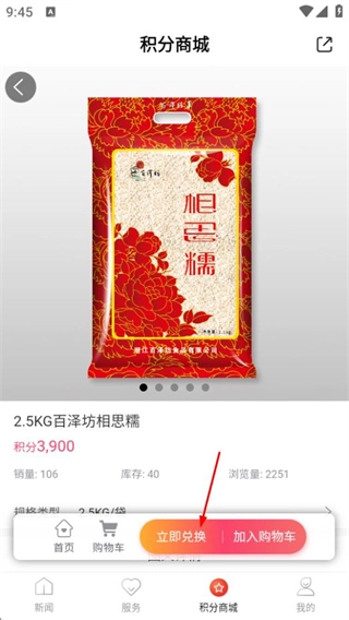 在商品详情页,点击“立即兑换”按钮,即可用积分兑换该商品。