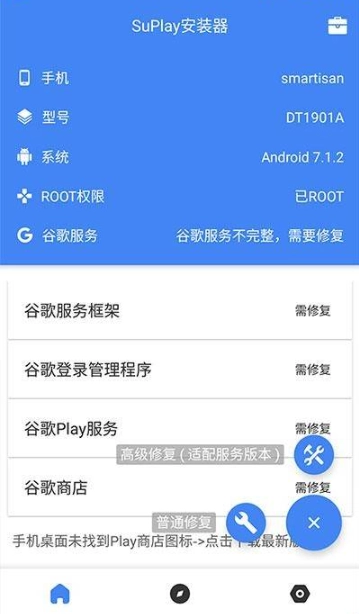 2、Su谷歌安装器提供两种修复方式供选择,建议优先选用高级修复。