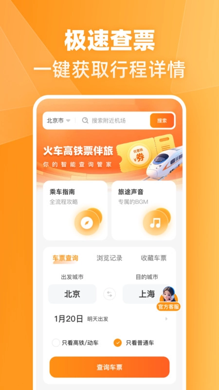 火车高铁票伴旅是一款能便捷查询车票信息、享受低价出行服务的软件。它可以结合你的行程安排,在线同步查询匹配的车次信息,方便你浏览并做出合适的购票选择。此外,平台还提供出行指南供参考,首次乘坐火车或飞机的用户,可通过浏览详细内容,避免出行时手忙脚乱。