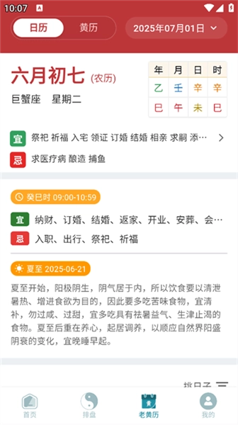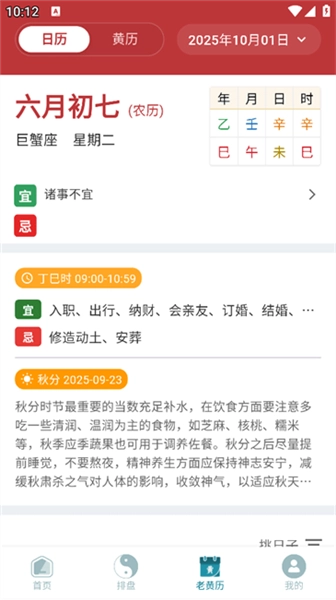 4、进入黄历页面后,可查询今日黄历详情,了解今日的黄历宜忌信息。